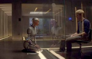 In the middle of nowhere surrounded by nothing, Caleb soon discovers his heavy drinking, intense and aggressively dislikable host Nathan has something else in mind. With only a mute (and lovely) maid (Sonoya Mizuno) and something else, it is gonna be  a stormy week. But Caleb isn’t here for a break, or because he won an award, he is here because he is wanted to perform the Turing Test (you know, the one in “Blade Runner” to prove you are human or robot) on an Artificial Intelligence known as Ava -the stunning Alicia Vikander, created by Nathan from every piece of information on the internet.