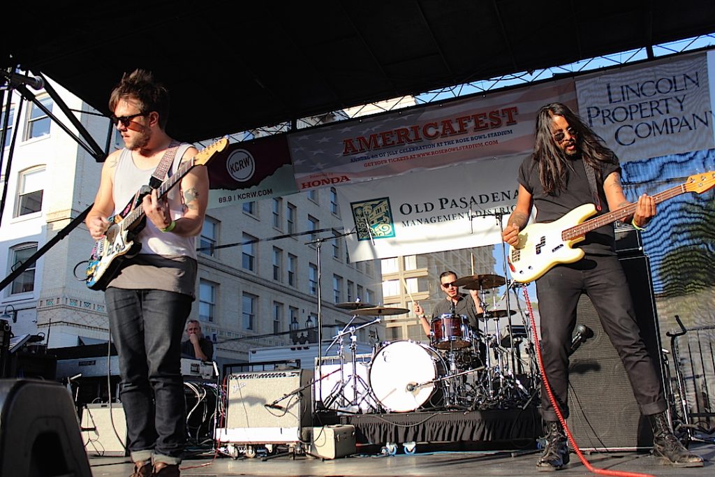 I had a bit of time to check Avid Dancer before Nick Waterhouse, it’s always hard to decide during a festival, and some of the stages at Make Music Pasadena were so far apart that I missed a few acts I wanted to check out. I had seen Avid Dancer before, during some of these numerous festivals at the Echo/Echoplex and strangely I had in mind a much more muscular music… may be I was remembering more the physique of the band members than the music itself because it was poppier than I thought, with some really strong and catchy melodies. But it’s understandable since frontman Jacob Summers is an ex-marine with ‘blood’ written on his guitar, and his dark-long-hair bassist, had an animal and fascinating presence.