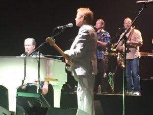 It was a generous set, over thirty songs in under two hours. No wasted solos or riffs, with performances true to the spirit of the original recordings. After opening with “Our Prayer,” Wilson moved into one of the highlights of the evening with the kaleidoscope roller coaster ride of “Heroes and Villains,” then pulled out “California Girls” for the crowd sing along. Al Jardine took the vocal leads on “Shut Down” and “Little Deuce Coupe,” then another highlight for the evening was “I Get Around,” one of Wilson’s most endearing compositions. This was a show that mixed in lesser known material, the big hits, and songs from Wilson’s 2015 album No Pier Pressure. Although the album was just released in April, there was no overriding sense that this was a “promote the new product” gig and the new material sounded fine within the context of the career overview.
