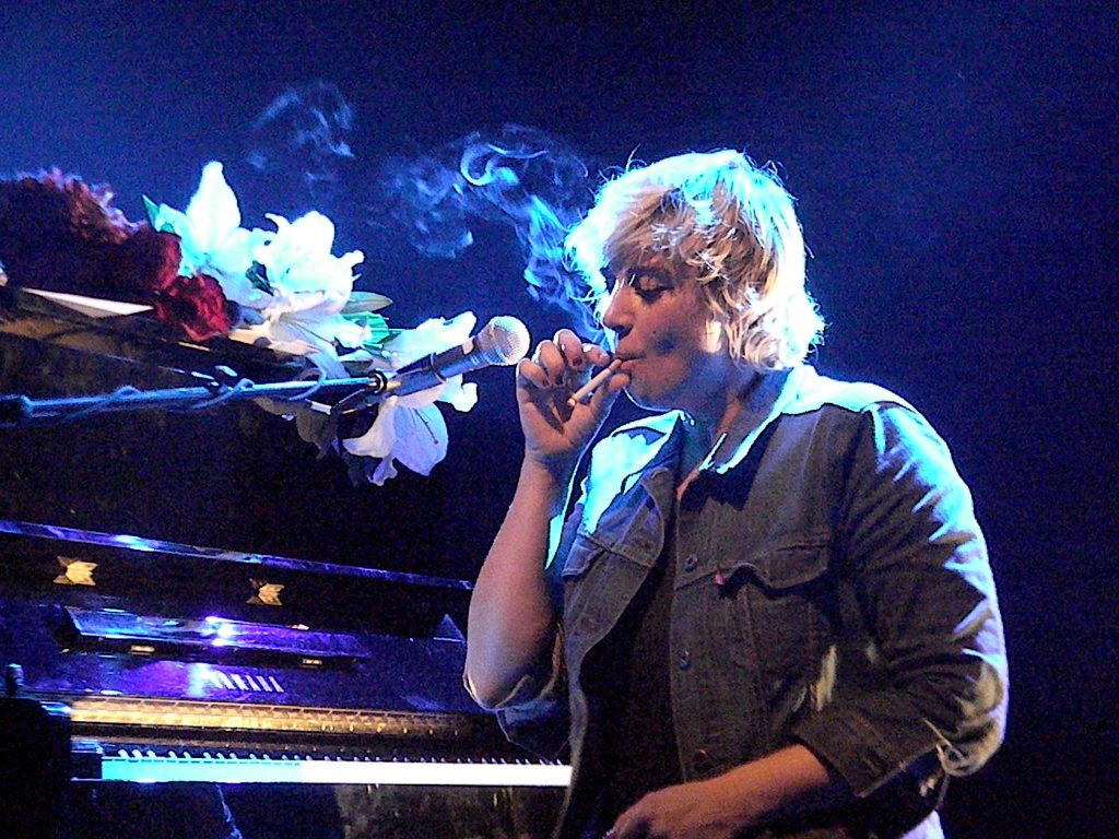 But, tell me, which other performer sees his or her performance interrupted just after the third song by a torrent of flowers delivered by fans, and followed by an effusive demonstration of love with gifts, books arriving on stage as if it was Christmas three weeks in advance? Only Chan Marshall sees this and it went on for a little bit, since Chan wanted to thank everyone… till someone shouted ‘Let her play!!’ She actually continued to play for a long time, in a disorder manner, picking songs from her typed setlist, suddenly deciding to sit at the piano, lighting a cigarette, puffing on it twice then crushing it under her boot a second later. I know that some people find her curious antics, her abrupt stopping in the middle of a song, her constant adjustment of the sound (‘more reverb?’) accompanied with hand gesture, and her overall unfocused performance,… err, let’s just say… distracting, but this palpable love between Chan and her audience was truly magical, each one of her sorry was followed by a hundred supportive ‘I love you’, each one of her awkward moves followed by a million of laughs.