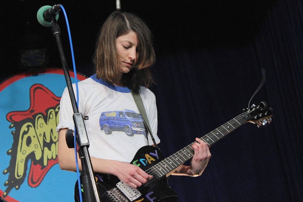 At Amoeba, she sang her hook-filled tunes with a soft and dreamy voice, strongly contrasting with a loud and almost sludgy punk guitar, and she could be a sort of Best Coast with a harsher side, or a female-version of Weezer with simpler songs. The songs she played seemed indeed quite simple, a sort of series of girl’s diary entries, some high school or mid-college existential rumination about growing up (of course) sung over an aggressive punk bass guitar. Tall and thin, with a very juvenile look (she is 30) she may have played just five songs, but she left a strong impression with very minimal stage antics or crowd interaction, kneeling down to program her drum machine each time, while cleaning her throat. Who is Colleen Green? I asked myself.