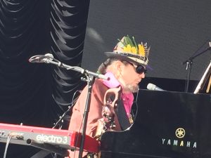 Very funny and when Mac Rebennack emerges on the stage an hour later, with a tight little band behind him featuring trombonist Sarah Morrow, we were primed for that swamp thang but… well this what I wrote two years ago (here): “Dr. John isn’t missing much in 2013 that he didn’t have in 1973 and the set built through strange segues and jazz, r&b and blues excursion all unmistakable and his from “Iko Iko” to “Such A Night”. Still, this can work against Dr. John, whatever he does he sounds just about the same and while I like that sound a lot, it is a little too much. Especially since he has an air of going through the motions. I enjoyed him but I couldn’t take a steady diet.”