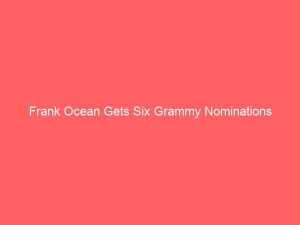 Now comes the news that Ocean was nominated for six Grammy's: Album of the Year, Record of the Year, Best New Artist, and Best Urban Contemporary Album, plus Best Rap/Sung Collaboration and Best Short Form Music Video for "No Church in the Wild" .