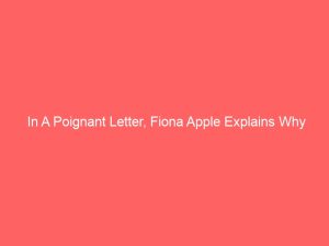 If Morrissey postponed his tour because of his mother’s illness, Fiona Apple is canceling some of her dates in South America because of her dying dog. This is so sad!!