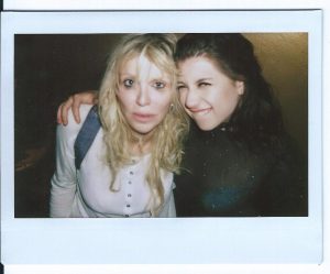 Recently I saw two young female rockers doing the same disturbing thing, admiring Courtney Love. Natalie Denise Sperl, of the band Kill my Coquette, a rebellious frontgirl who knows how to rock, posted a few pictures of Courtney Love on her Facebook wall, with many marks of affection and respect, while Kitten’s wild frontgirl Chloe Chaidez posted this proud picture of herself with the Hole singer, visibly excited to meet her… well her band even opened for Courtney Love a few days ago.