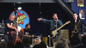 JD McPherson gave a really great show to the Amoeba crowd, playing a set full of a vibrant energy deeply rooted in American music history. Despite his young age, McPherson transports his audience in an early-Elvis era, as his 50’s-inspired music sounds like a Sun Records throwback. Surrounded by four musicians, he demonstrated he excels at this retro sound, sounding like a more rockabilly version of Nick Waterhouse, or like a modern reincarnation of Little Richard, Buddy Holly and Eddie Cochran at the same time. It’s vintage rockabilly with keys, saxophone and upright bass, lots of clapping and some howling, a great energy and a brand new twist, since nobody sounded exactly like this in the 50’s. Plus, there’s also good diversity in his music. Take ‘Bossy’ (one of my favorite songs he played) it was an excellent stomp, with a more deep-south-country sound, and a whipped beat à la Johnny Cash, whereas the Elvis-inspired ‘It Shook me Up’ was running a Jerry Lee Lewis boogie piano.