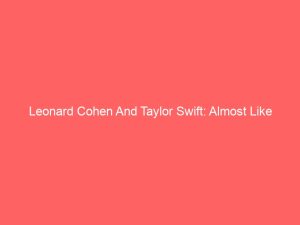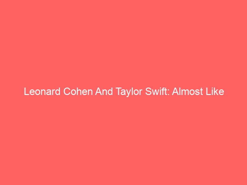 Some music days are better than others and today there are two terrific songs that are making me nothing but happy. Leonard Cohen’s “Almost Like The Blues” and Taylor Swift’s “Shake It Off”. They both have huge similarities bigger than being released the same day; they are something like mirror images, Cohen reacts to political disasters, to there being no god in heaven and no Satan in hell by noting that things could, in fact, be worse. Rape, murder, terrorism and bad reviews, but it is also only almost like the blues. There are worse things -which, when you’re facing your own death makes perfect sense. Taylor is making the same point, only from a very personal sense: she dates too much, goes out too much, gets dumped too often so what does she do with world opinion? She shakes it off. It is a bubblegum “Dirt Off My Shoulder”.