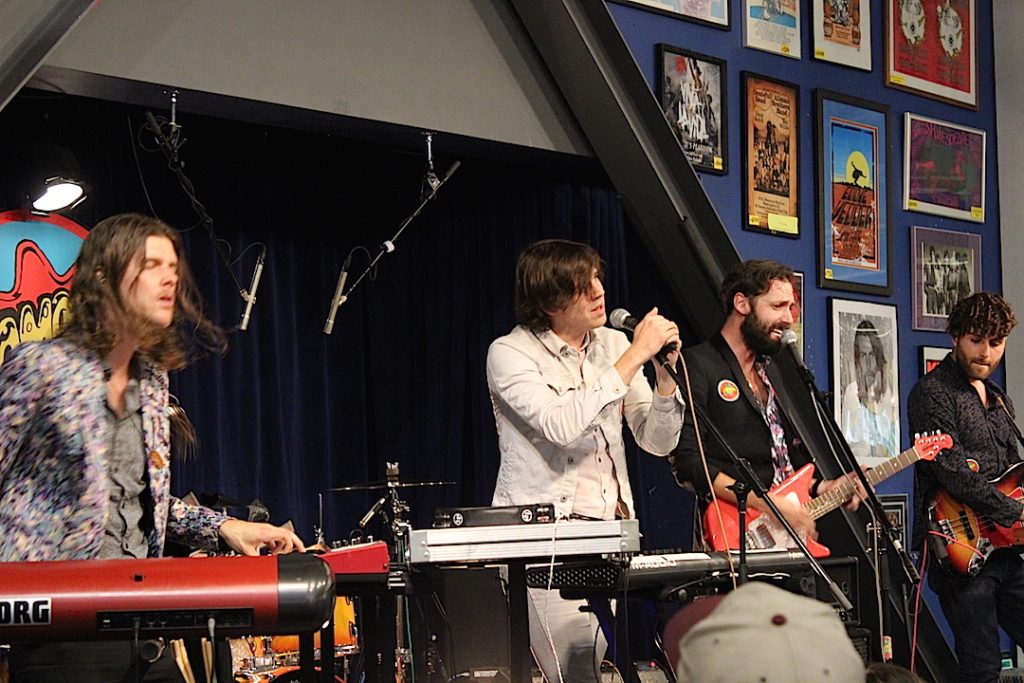 Their set at Amoeba sounded like a sunny dance party, disco or post disco, you decide, avidly phagocytizing a lot of our collective dance music memory and throwing up many enjoyable and poppy slices. This happy band may have too many good ideas at the same place, but it mostly worked, all upbeat, funky and colorful like the artwork for their album. I have even read that their dream collaboration would be Prince? It would totally make sense.