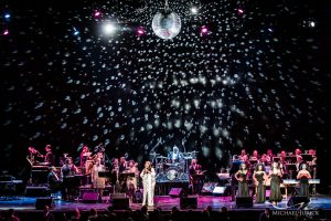 Before a twelve minute break Aretha performs a rocking “Think” and later on “Baby, I Love You” and an invigorating “Ain’t Nothing Like The Real thing” and she does her old pal Ahmet Ertegan , who co-wrote the song with Ben E. King, a lasting tribute. The complaint that she is tired in the funkier songs simply doesn’t apply toda nobody expects her to shimmy through these songs and though your heart might fall when she sits at the piano, it doesn’t for long. She starts with “Bridge Over Troubled Water” -stretching the word “Down” over five notes and builds the song to a funk and then Gospel crescendo before segueing into the spiritual “One Night With The King” and anybody who loves Franklin loves her first love (her father is a minister) Gospel. It is a wholly appropriate show stopping conclusion.