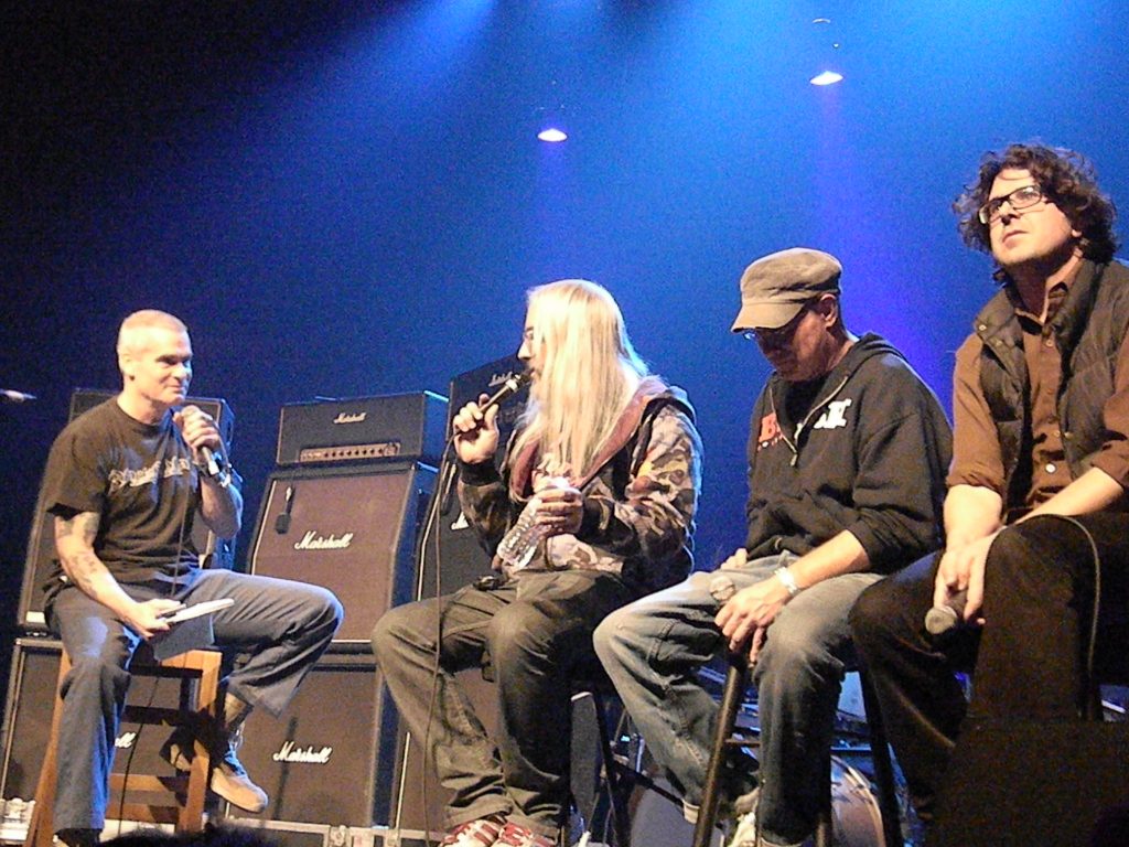 Rollins has been doing this many times, following the band on tour on the East Coast then on the West Coast, but not showing a sign of getting tired of his new role. A few minutes earlier, I had seen him entering the theater lobby and having to show his ID to security guards who didn’t know who he was. ‘I’m the interviewer of the band’, he said,… what? Henry Rollins still have to prove who he is?