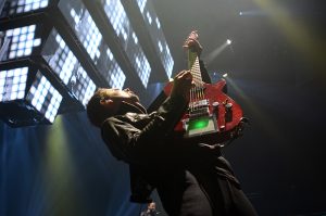 At Madison Square Garden last night, Muse were tough pros letting their LED pyramid power stage do the heavy lifting wow while they bottled down for a powerful set of mediocre rock. The day of the bombing attack at the Boston Marathon, Matt, who dedicated “Survival” to the runners a couple of deals earlier, referenced them briefly before the National Anthem and before  encore. “Let them hear you…” he commanded, which kind of explains why he doesn’t speak to the audience over the length of the set . If ever a band didn’t have an MC, that band is Muse. Despite his rock star posturing, Bellamy is a team player, he isn’t a leader, even when he is in the middle of the audience glad handing.