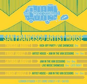 Jam In The Van is located at San Francisco Artist House, Lennon Studios, 271 Dore Street, San Francisco, CA 94103 (415/575-3636- @jaminthevan)… so don’t miss out, this year, Outside Lands headliners are Elton John, Mumford and Sons, The Black Keys, Sam Smith, Kendrick Lamar, Wilco, Tame Impala, D’Angelo and the Vanguard and so many other artists. Would you bet on a duo Sam Smith-Elton John?
