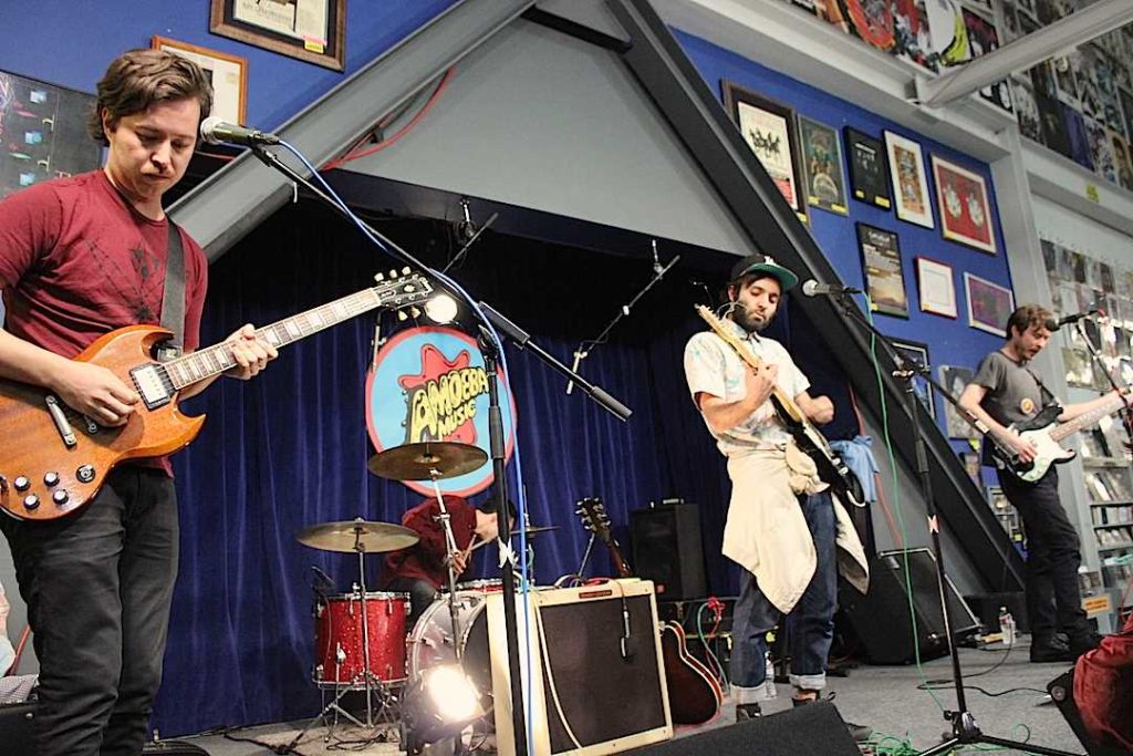 They were doing an in-store at Amoeba on Thursday night, and had gathered a good crowd for the second ‘Converse Rubber Tracks’ show and a giving away of a split 7” of So Many Wizards and Tennis System, a band who had played the first show two weeks ago. Both bands have develop their own sound, a personal blend of many influences, and So Many Wizards seemed to have a punk rhythm tamed by soft and heartfelt melodies, hazed into a dream pop sound.