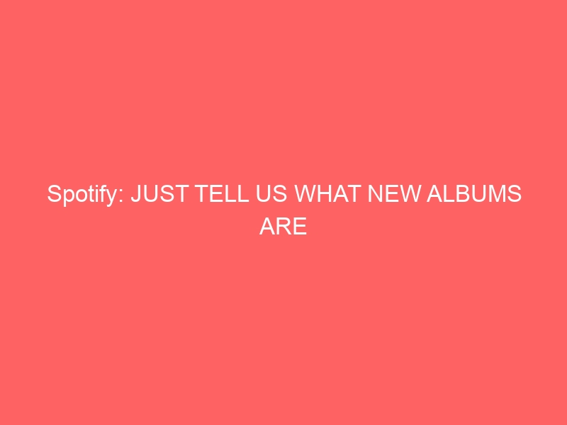 The platform has no way of informing their subscribers what new music will be or is available for streaming, I wake up on a Tuesday clueless as to what Spotify will have and use many different information services, Metacritic, Direct Current, Wikipedia, ITUNES Store, to get a handle on what has been released and then I search for them over a period of maybe six hours, 6am to 12p.I also subscribe to Spotify's terrible new releases subscriber list.