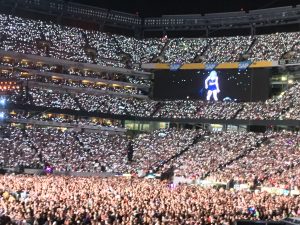 When we were coming into the stadium and got bracelets and the ladies said they were amazing. I pulled out the little stringy thing and there was only a little flash. I thought they would be useless, but on Taylor’s first song they all glowed up out of nowhere and it was so cool, it blew my mind!