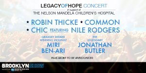 “The Legacy of Hope Concert in Support of The Nelson Mandela Children’s Hospital is coming to Barclays Center on Wednesday, July 15. Performing artists will include Robin Thicke, Common, CHIC featuring Nile Rodgers, Grammy Award winning violinist Miri Ben-Ari, and South African musical legend Jonathan Butler. Additional artists will be added in the coming weeks. The Legacy of Hope Foundation is a nonprofit organization working to support the development of The Nelson Mandela Children’s Hospital in Johannesburg, South Africa. Tickets go on sale to the public on Monday, June 29”