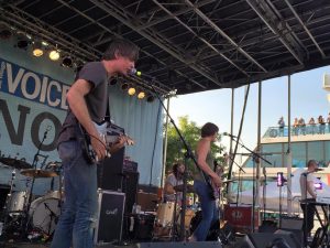 With the temperature in the lower 80s and puffy white clouds playing tag with the sun, a dip to deliciously fresh as the hours passed along and the headliners reached the stage, you couldn’t have asked for anything lovelier than Saturday afternoon. Standing on the bridge of the Hornblower Yacht and watching one top art guitar band after another perform, in an unusually well curated day of rock and roll, New York has never been sweeter.