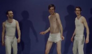 Written and directed by Patrick Stickles, the long clip shows Stickles fighting with his demons without losing his sense of humor during furious pop choruses and explosive songs. Soon Stickles lets his inner dancing-guy out during his some cool choreography, while occasionally teasing us in his white boxers. All this is very uplifting and filled with humor, and midway, bearded dark Stickles confronts an un-bearded and whiter version of his own self during ‘Fired Up’… the scene has a Salem witch trial look, while the clean-shaved self tells the bearded self to rebel, let his inner fire burn without letting society mold him, shouting in his face…‘They would like to/Turn a subject into a citizen/They will make you/A patient if you take their medicine/They sell you shit to make you sick’… You’ll find all the lyrics fantastic if you share Patrick Stickles’ existentialist sense of rebellion.